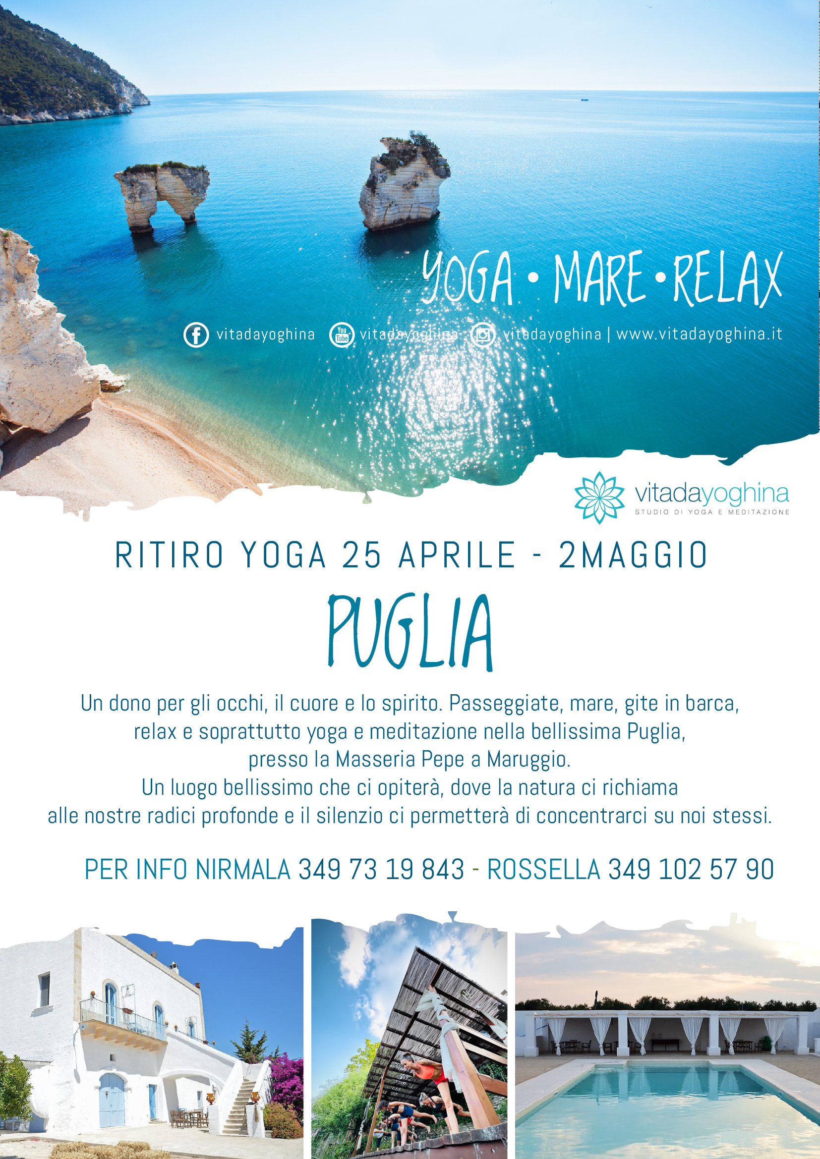 Dal 25 aprile al 2 maggio Retreat Yoga in Puglia con mare, pratiche, camminate, rilassamenti, laboratori.