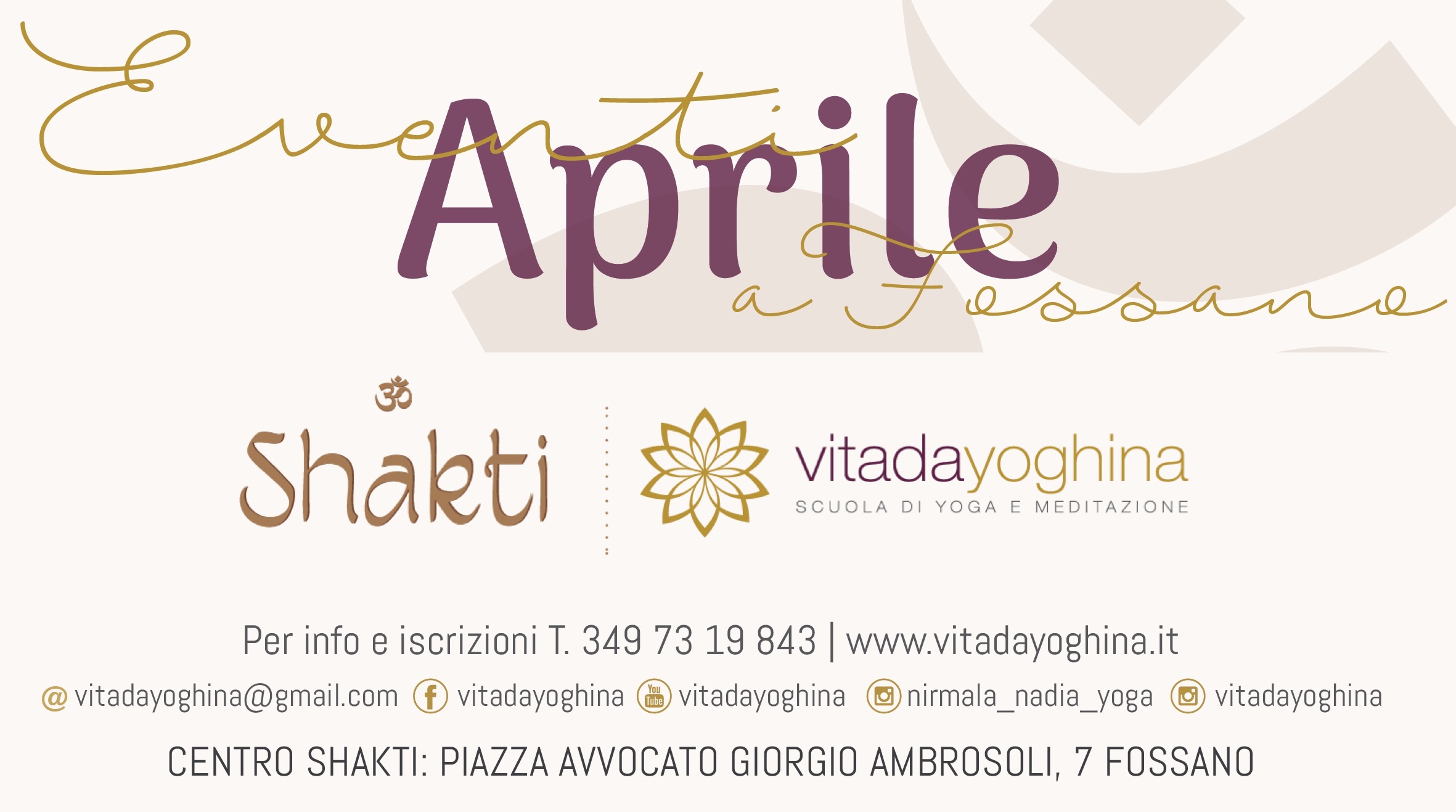 📅 Eventi a Fossano Aprile a Fossano e Cuneo L'olistico e lo sport in provincia di Cuneo mese per mese ✨ Eventi di Aprile al Centro Shakti – Vitadayoghina ✨ Aprile è il mese della rinascita, del respiro che si espande e dell’energia che torna a fluire.Presso lo studio Yoga [...]
